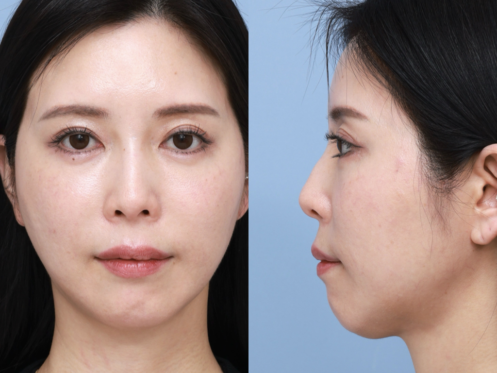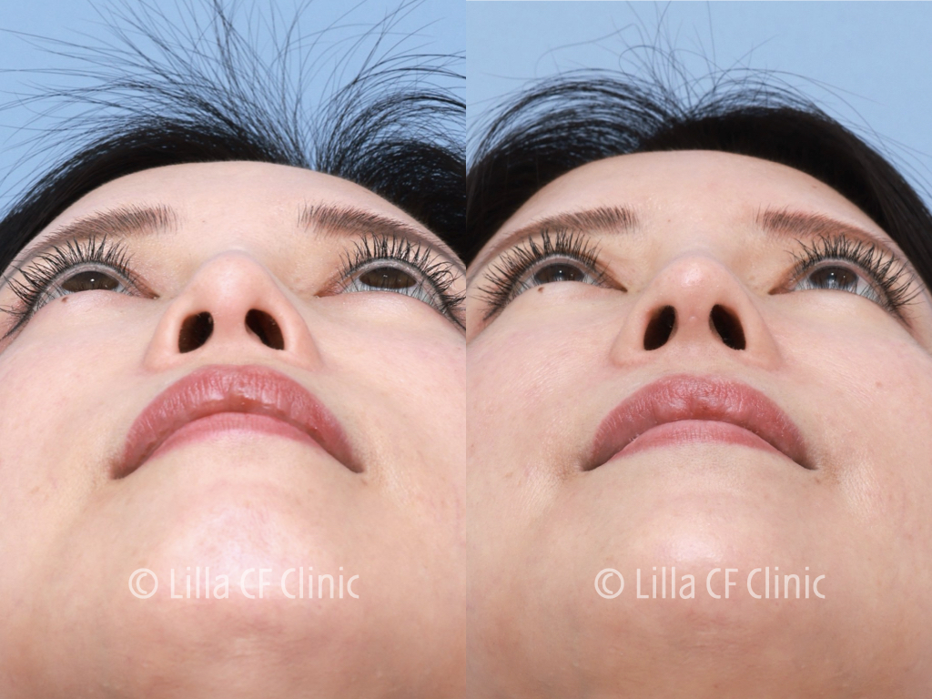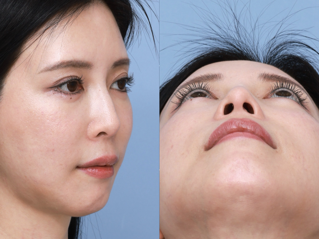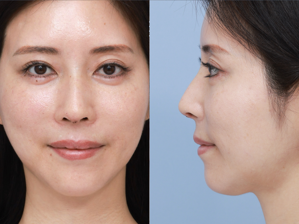 鼻尖を含めて中顔面の突出感が,やや不足している状態です.鼻全体がやや短いため,お顔のプロポーションがくずれ,人中が長く感じられます.